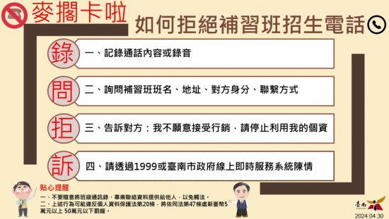 教育局「如何拒絕補習班招生電話」流程圖卡文宣 1 份。