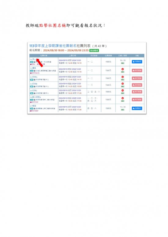 老師欲查詢社團報名狀況,也可按照指示進行操作。