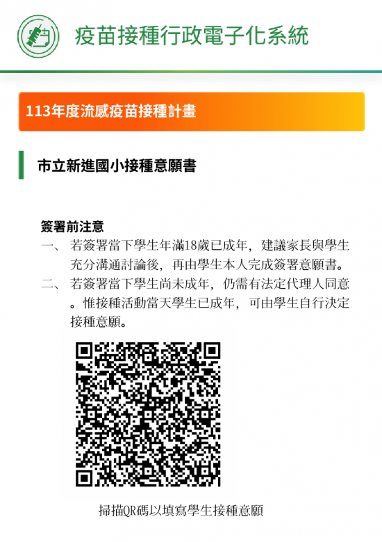 113 年新進國小流感疫苗接種連結