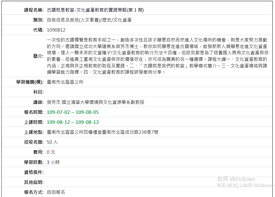北區區公所辦理「古蹟就是教室-文化資產教育的實踐策略」研習,請鼓勵所屬教師踴躍報名,請查照。