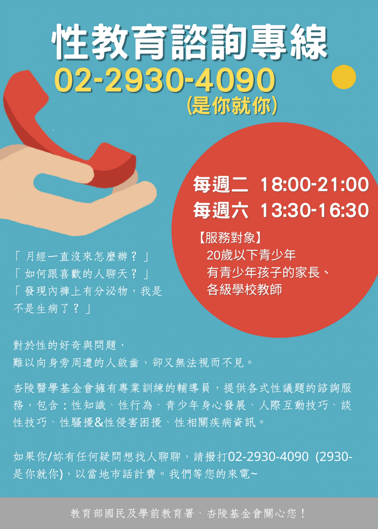 四、檢附性教育電話諮詢專線文宣1份(如附件)。