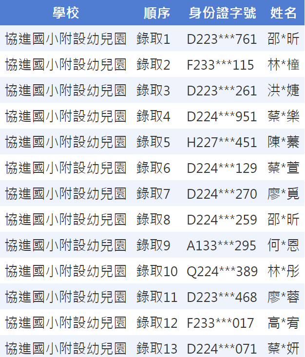 名單如下,恭喜錄取的小朋友,歡迎加入協進附幼的大家庭。
