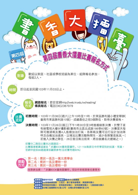 轉知 2014 年非讀 BOOK 臺南愛讀冊─書香大擂臺活動