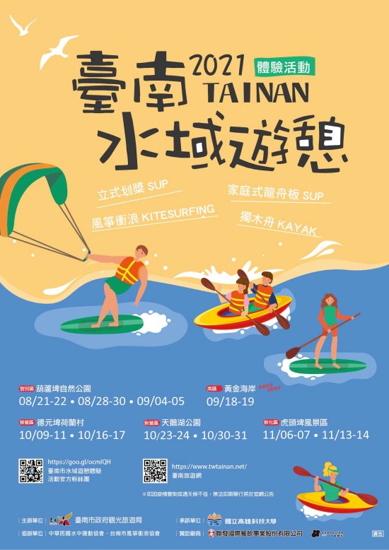 一、國立高雄科技大學執行臺南市政府觀光旅遊局「2021 臺南市水域遊憩體驗活動」,活動項目為:獨木舟、立式划槳、家庭式龍舟板及風箏衝浪。