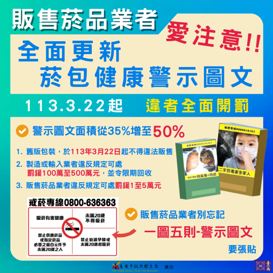 菸盒警示圖文面積加大至 50%, 3 月 22 日上路強制執行!!