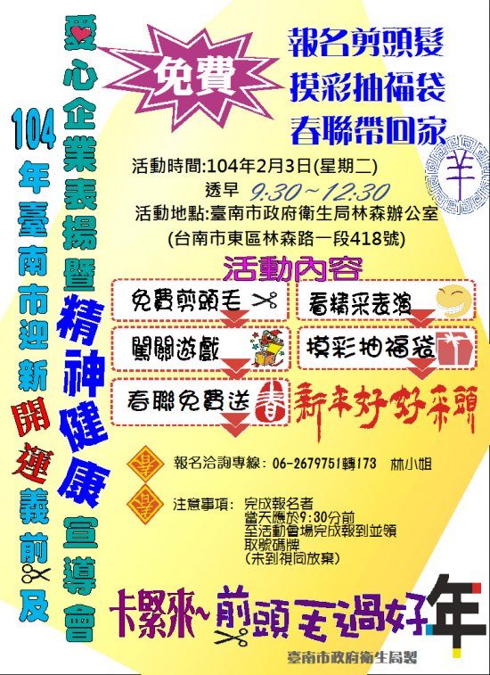 三、相關活動事宜請洽報名專線︰06-2679751 轉 173 林小姐。