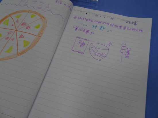 孩子們再回想手作烹煮的過程,並且試著把圖文寫畫出來