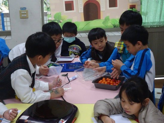 這次使用的水果是番茄,華雯老師先示範了一次煮糖的過程