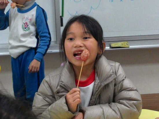 隨著示範及煮糖,要進入裹糖的階段,大部分的孩子們都很興奮