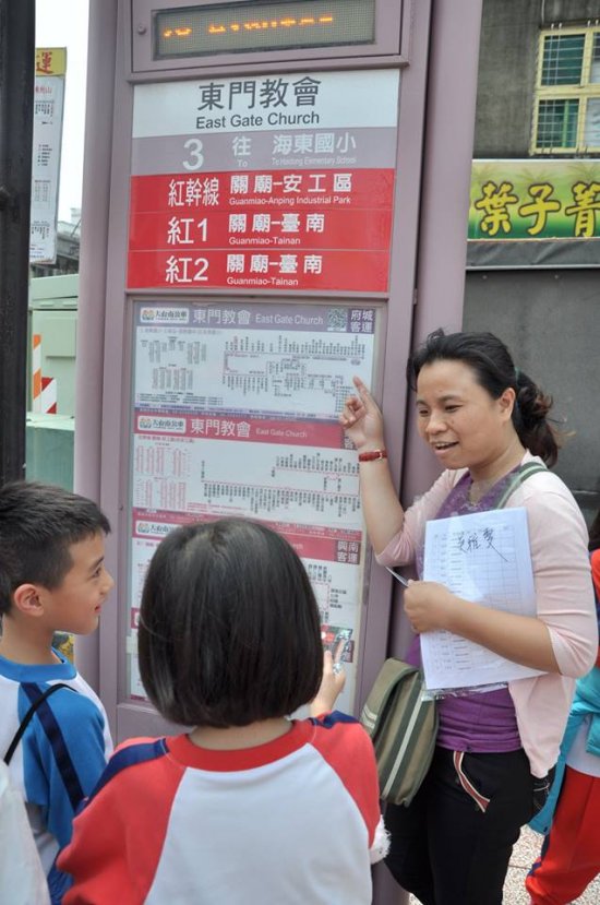從勝利國小走到東門教會搭公車~孩子們其實很少搭公車旅行,從認識如何使用一卡通或悠遊卡開始,再認識公車路線,如何安全的走路,