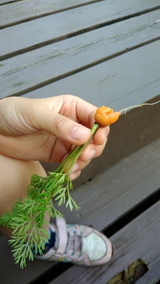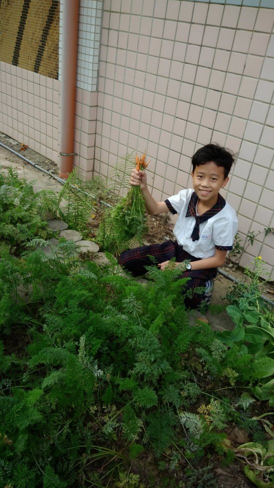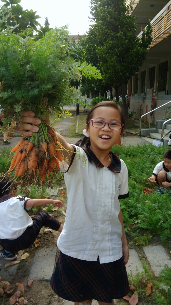 胡蘿蔔田被亂拔丟棄的狀況日益嚴重,學員們討論後覺得如果在菜園貼出胡蘿蔔的成長圖片,會讓好奇寶寶們更想去拔出來瞧瞧是不是跟圖片裡的一樣,所以一致不贊同。他們決定在升旗時上臺宣導,但也不見成效,當天下午就又發現被亂拔丟在一旁的蘿蔔。再者,胡蘿蔔成長的季節差不多要過了,白黴菌和斜紋夜蛾開始肆虐,於是顧不得蘿蔔還小小的~趕在在清明連假前採收啦~ 有帶胡蘿蔔回去的學員家長請記得~蘿蔔不用削皮,刷洗乾淨就可以切塊料理嘍!
