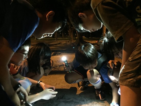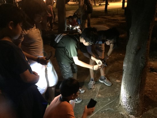 勝利植物解說員們這次的自然觀察活動不在學校,而且不是在白天哦!我們來到巴克禮公園打算尋找「蟬」的蹤跡。