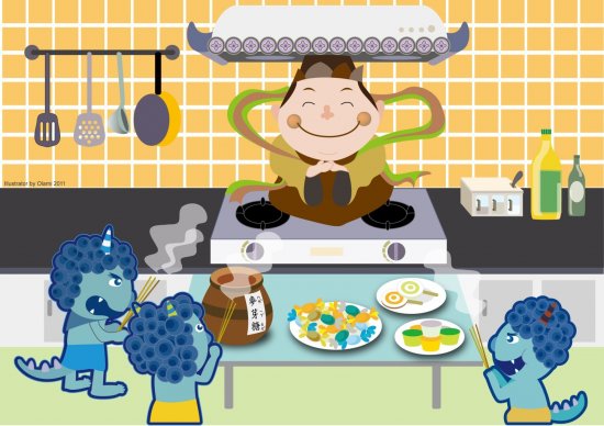 以前的廚房通常會供奉灶神,掌管一家人的平安,觀察家中每人的言行。傳說灶神上天庭後,會向玉皇大帝報告他這一年觀察到的是非。所以人們都會在灶神回天庭這一天,準備牲禮祭祀,希望灶神多說好話。宋朝開始以「甜食」祭拜,希望灶神能多「甜言蜜語」