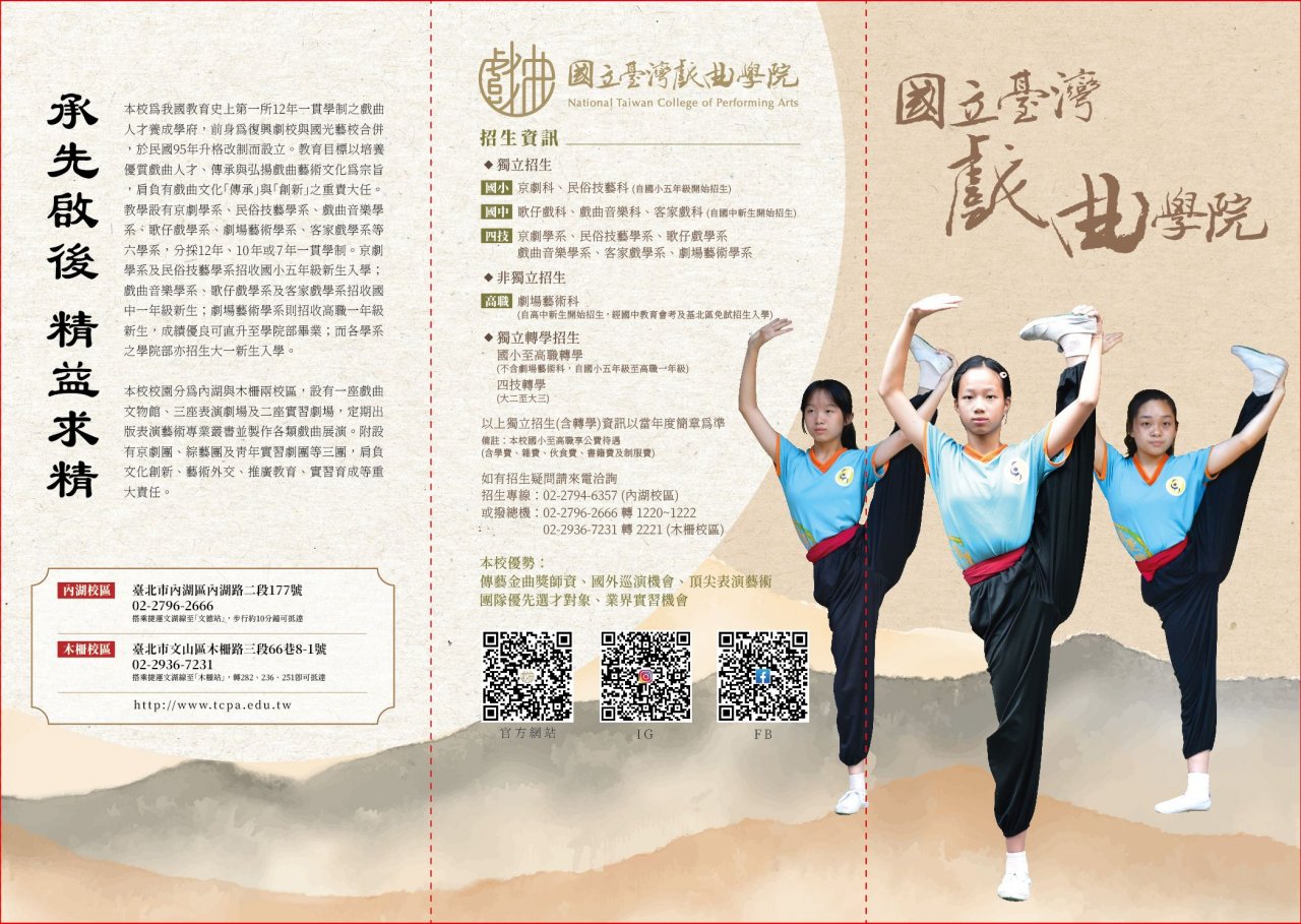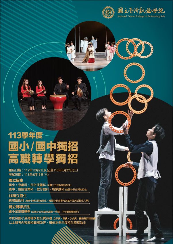 轉知國立臺灣戲曲學院113學年度高職以下(含國小與國 中)公費單獨招生暨轉學單獨招生活動