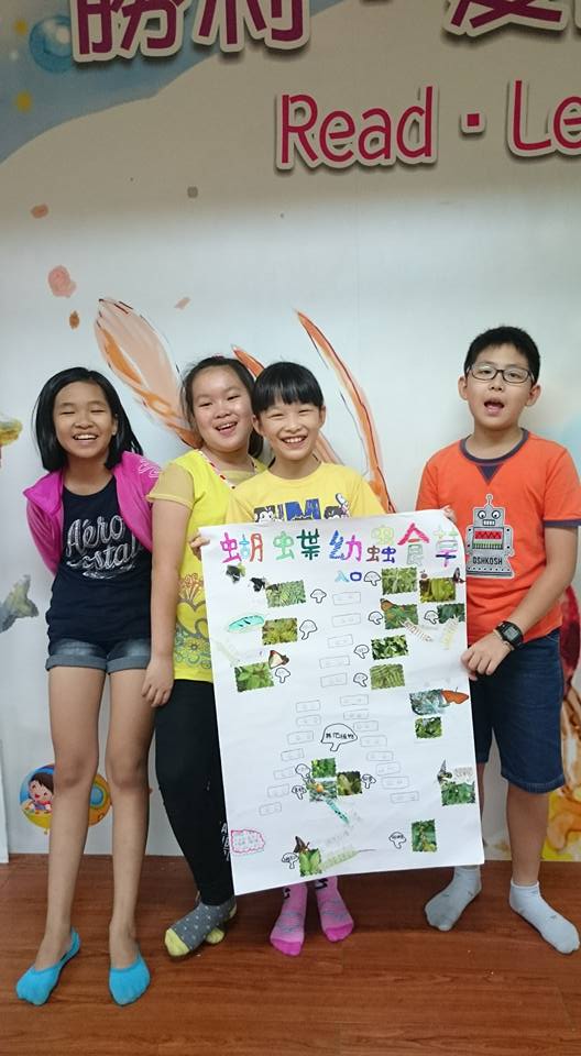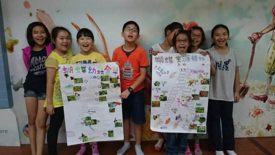 今天中午,野馬老師帶來的植物遊戲是孩子們最愛的─出題、猜謎遊戲。小朋友們得針對校園中的植物與動物各設計三道提示,再將謎題交給夥伴猜一猜: