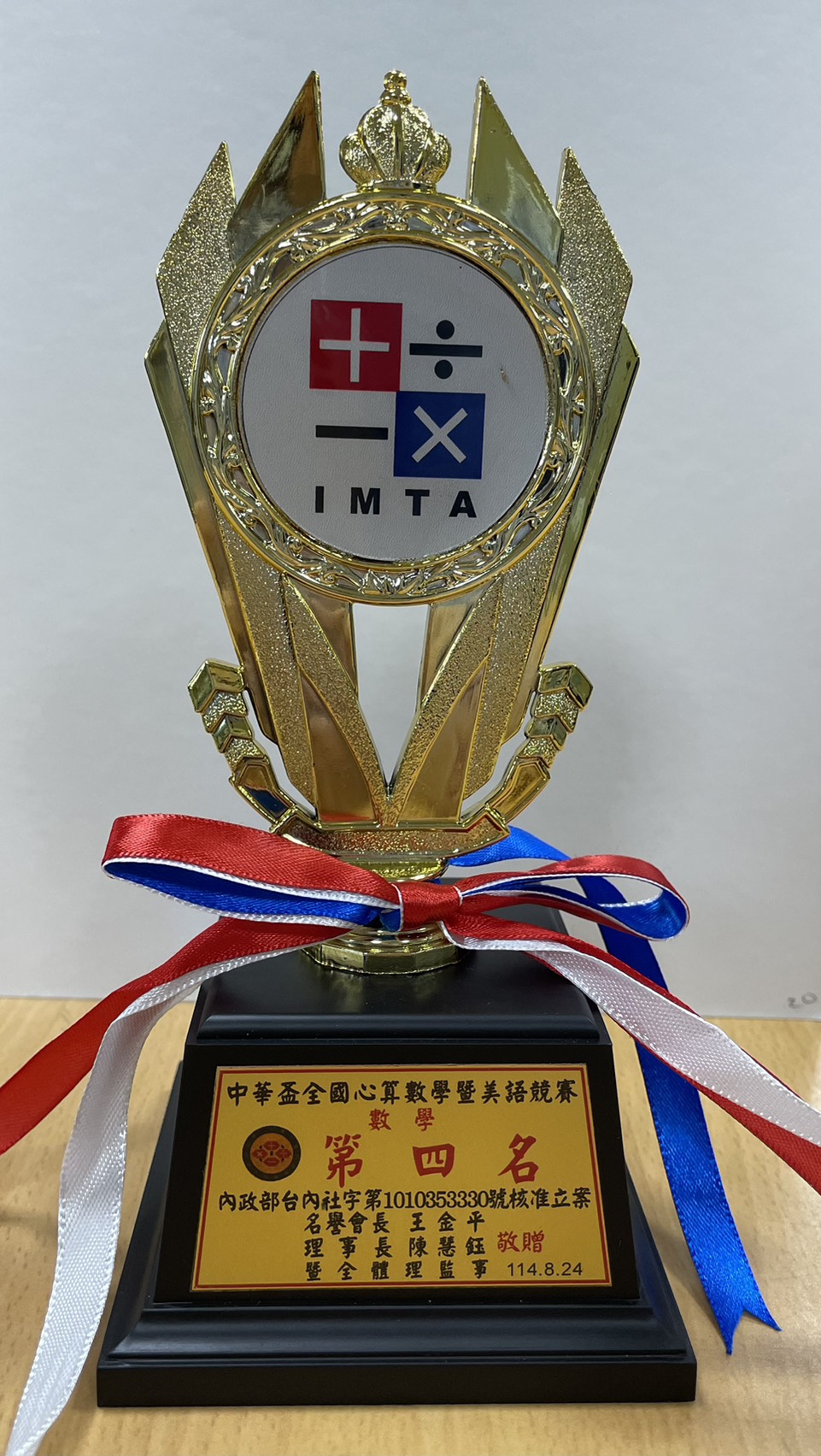 賀!305王婧伊參加中華南瀛盃全國珠心算數學暨美語競賽榮獲數學組第四名