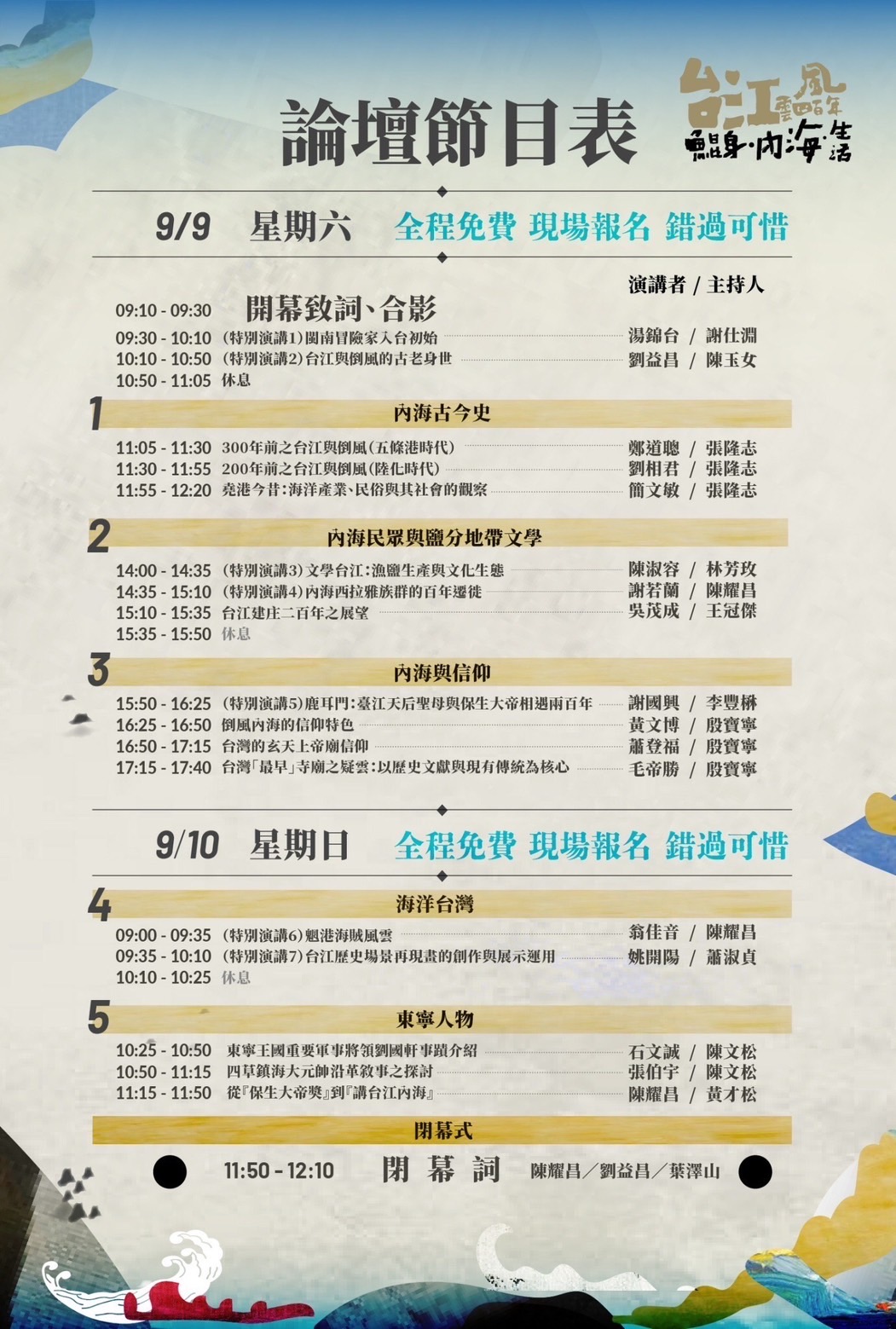1、本次論壇邀集相關領域專家,暢談台江內海古今史、鹽份地帶文學。期待您參與本次論壇,共同探討台南的歷史、地理、人文、生態等課題。