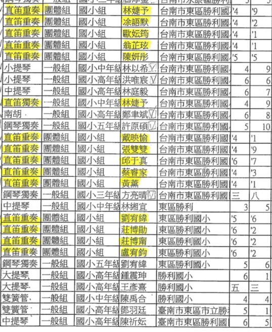 恭喜以下 114 年大台南學生音樂比賽得獎同學: