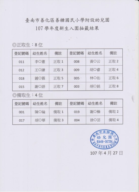 今年登記入園報名人數共計 19 人,扣除優先入園不需抽籤人數 7 人,