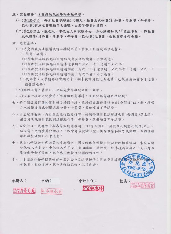 善糖國小附設幼兒園111學年度第二學期收退費辦法