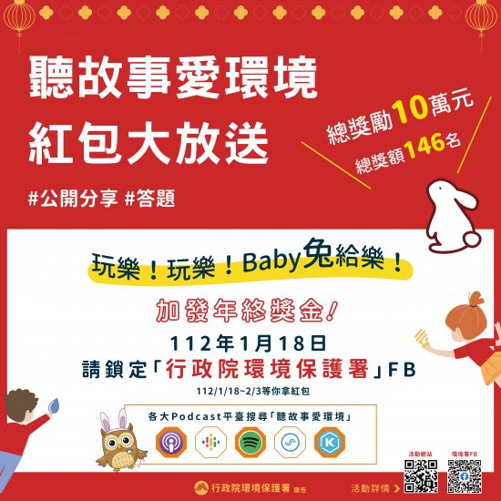 三、為增進「聽故事愛環境」節目效益,遂於農曆新年期間辦理旨揭活動,本活動期間為 112