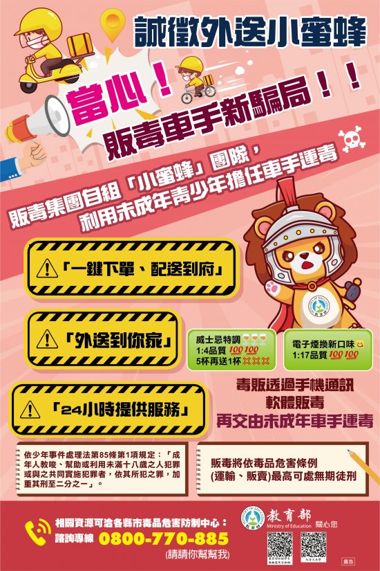 誠徵外送小蜜蜂~當心販毒車手新騙局!