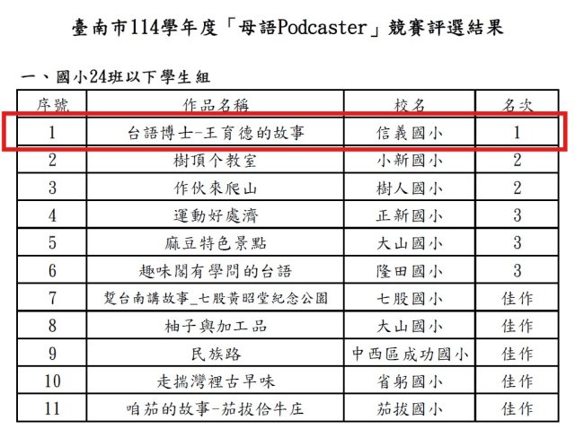 賀!本校學生參加「114學年度母語Podcaster競賽」榮獲佳績!