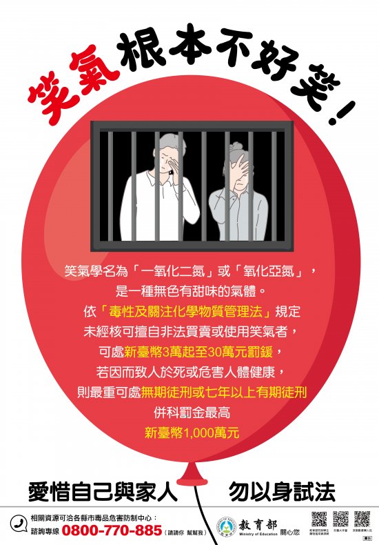 笑氣學名為「一氧化二氮」或「氧化亞氮」,是一種無色有甜味的氣體,行政院環境保護署於 109 年 10 月 30 日列為「關注化學物質」。