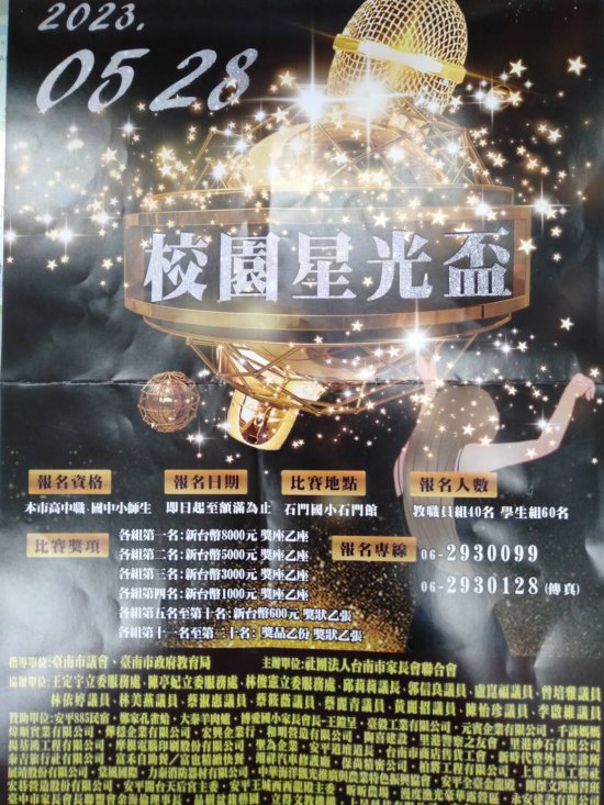 台南市家長會聯合會第一屆「校園星光盃」歌唱大賽,有意願者請參閱活動內容