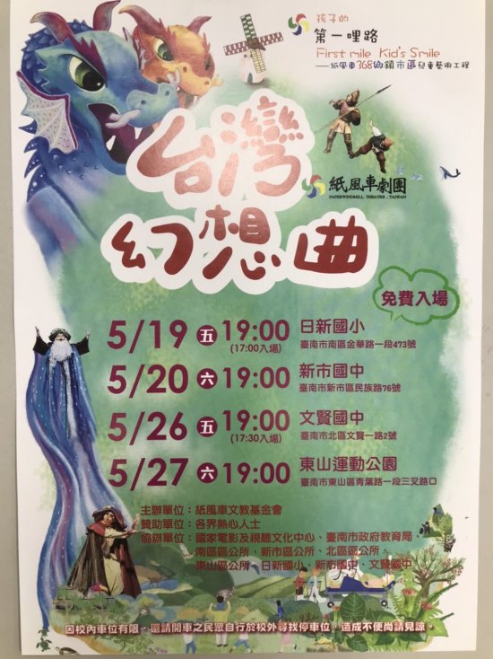 紙風車劇團五月份在台南市有四場免費演出,活動資訊如下: