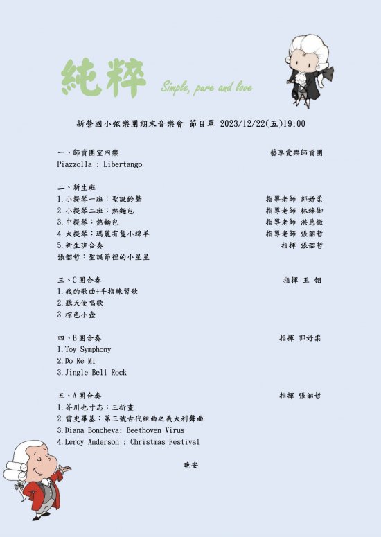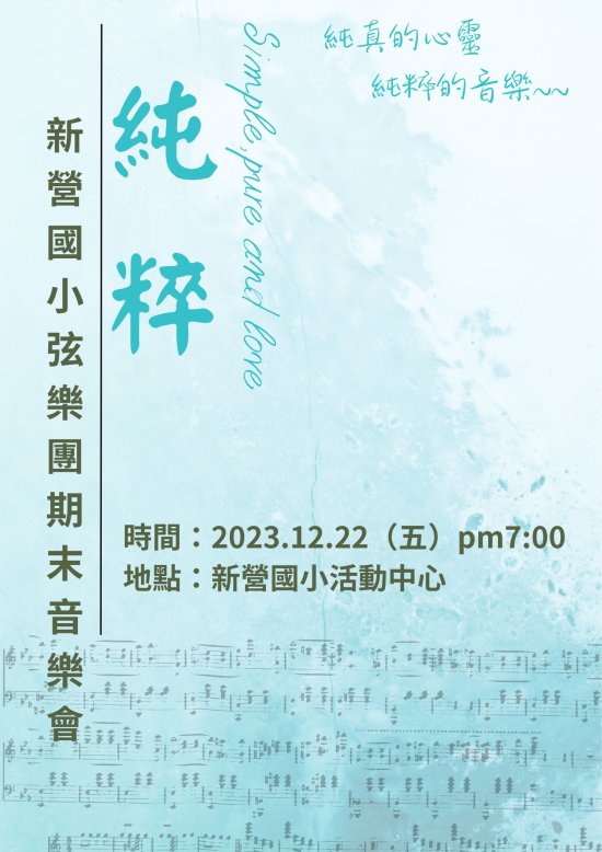 本校弦樂團「純粹」期末音樂會,誠摯邀請您到場欣賞孩子們的演出!