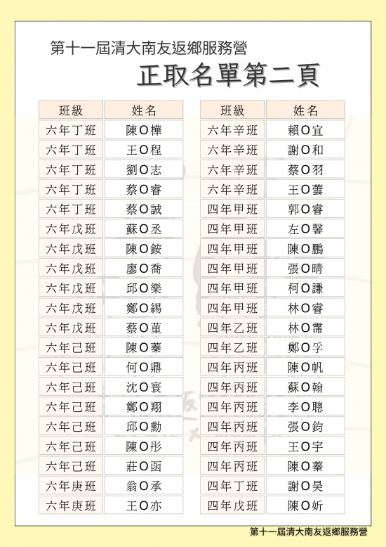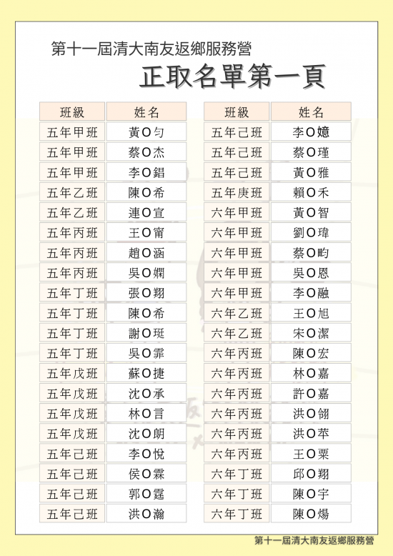 大南友返鄉服務營-錄取名單公告