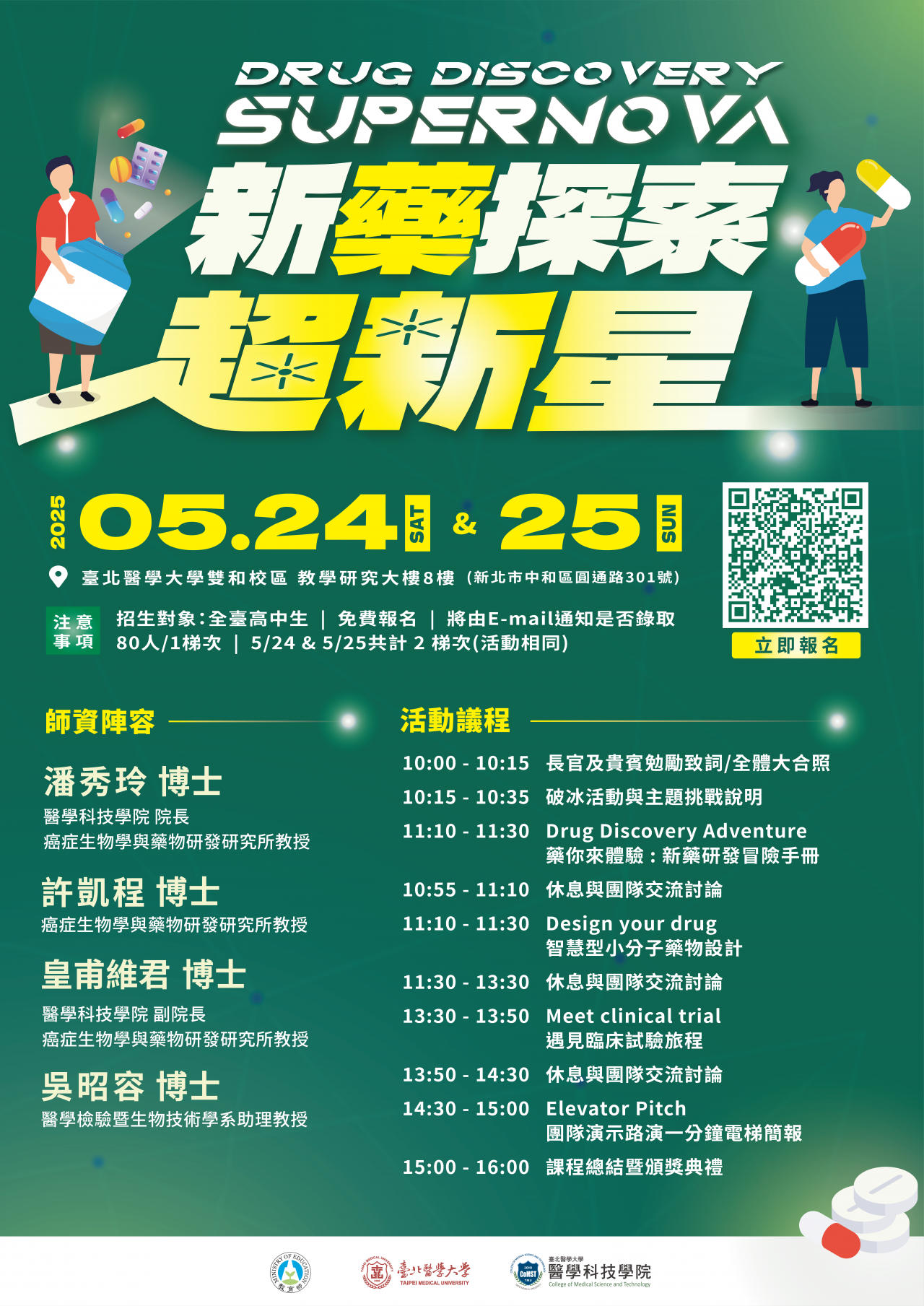 習之「Drug Discovery Supernova 新藥探索超新星科普培訓計畫」課程活動,擬訂於民國 114 年 5 月 24 日(六) 以及