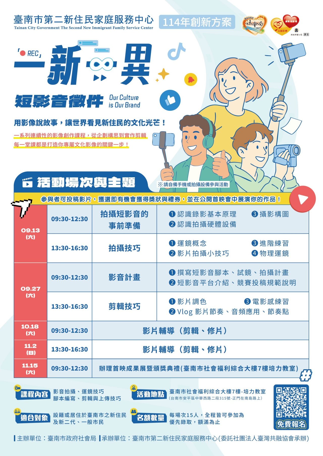 (二)參與對象:設籍或居住於臺南市之新住民及新二代及一般市民。
