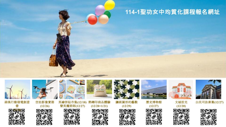 (二) 週末課程:文城拾光—臺南文學踏查、熱轉印商品體驗、鑲嵌圖形的藝數、走訪司法博物館&司法心理學劇場、走訪國立臺灣歷史博物館、聲英魔術師 Voice Acting 。