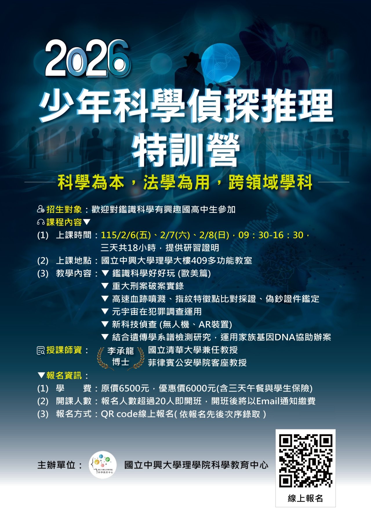 (四)招生對象:對鑑識科學有興趣之國中、高中學生。