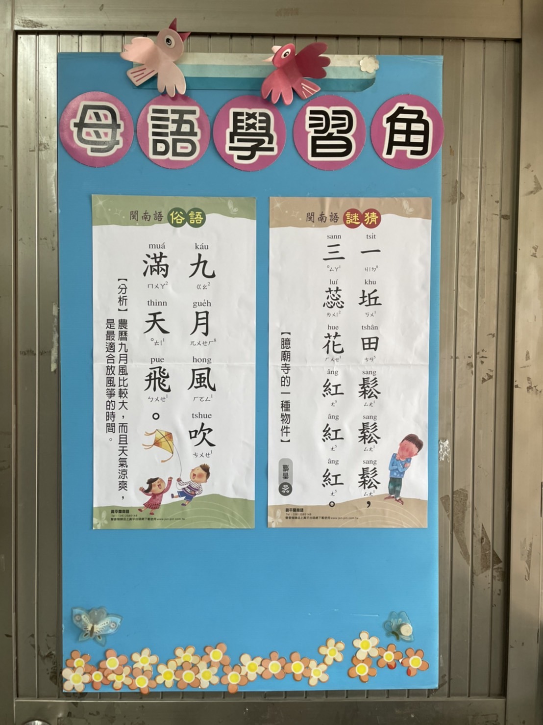 校園中處處隱藏母語學習內容,布告欄、窗台、教室櫃等,佇足會有新發現。