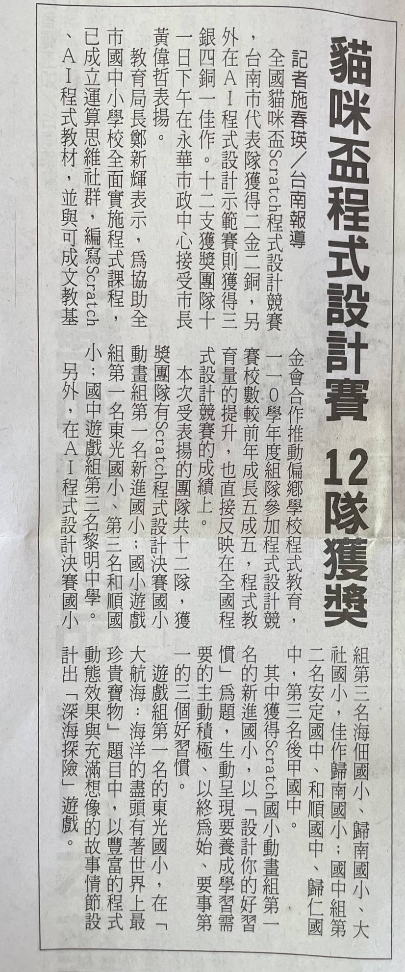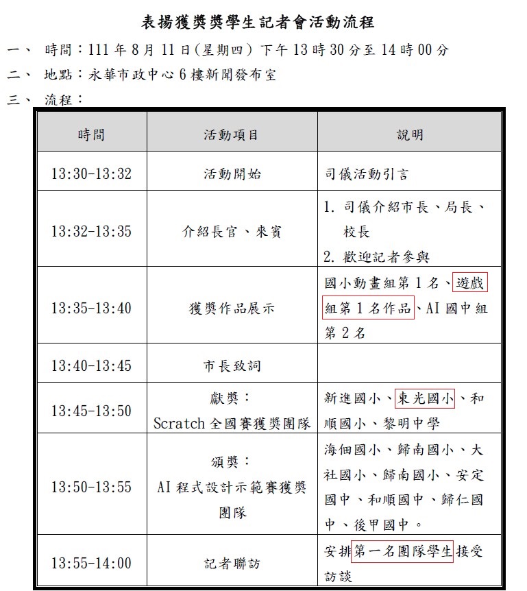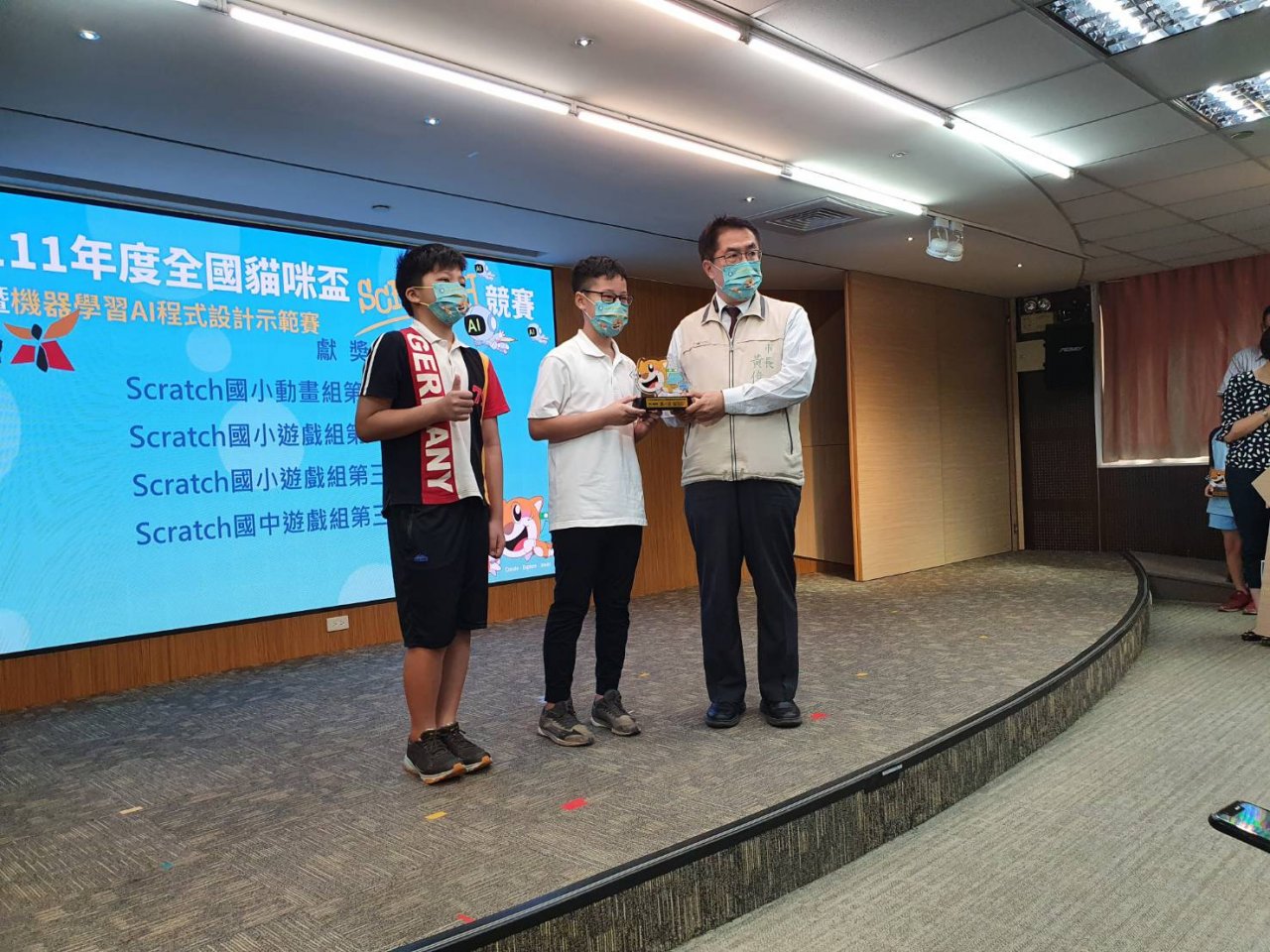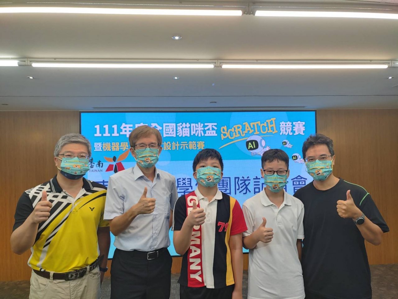 接受台南市長黃偉哲的表揚獲獎學生記者會活動。