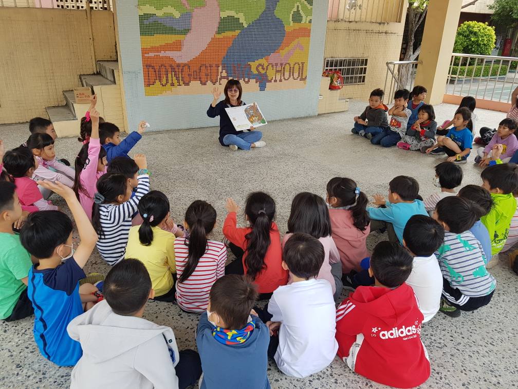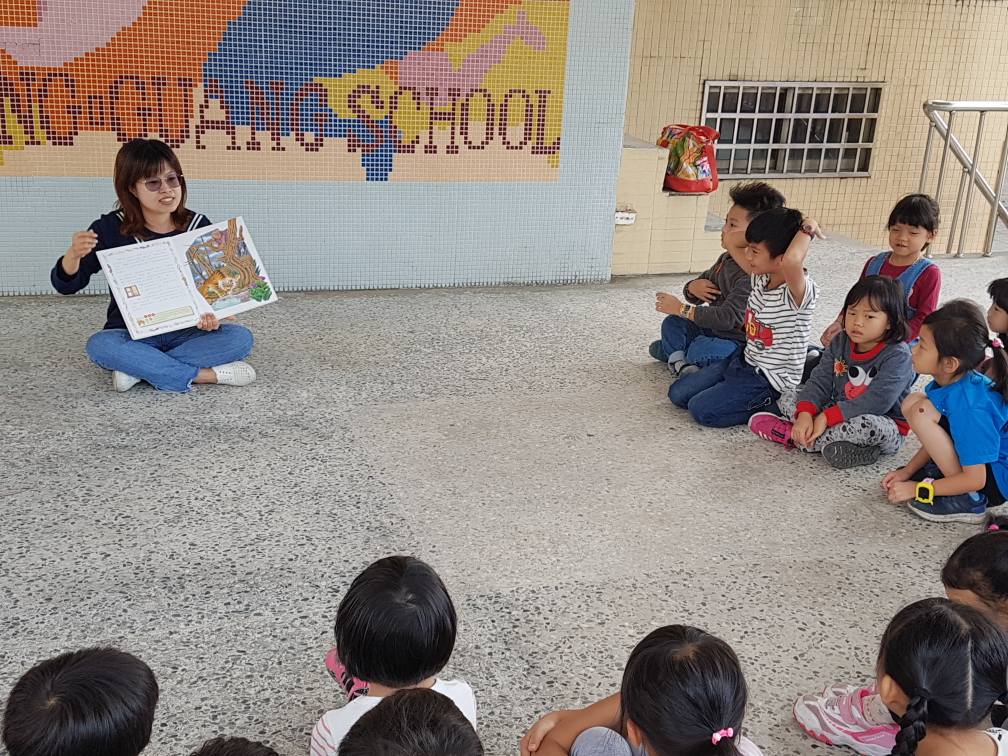 寶玲老師跟低年級小朋友用閩南語說虎姑婆的故事,小朋友聽的津津有味呢!