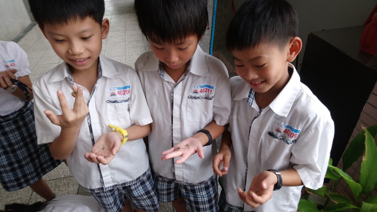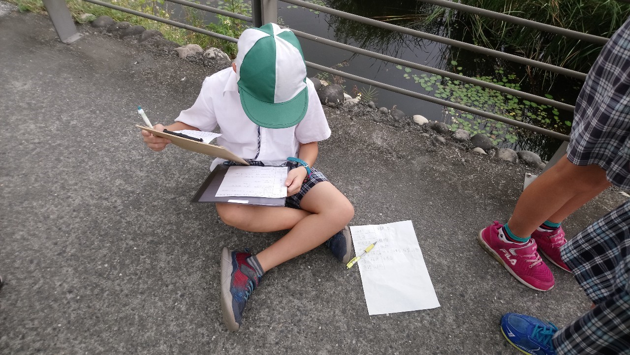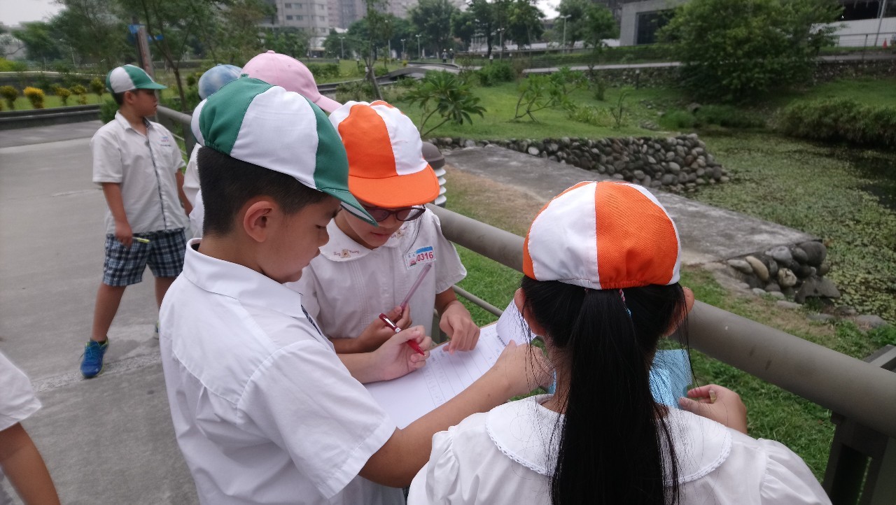 到學校鄰近人工溼地欣賞水生植物,老師也用閩南語進行植物導覽與名稱介紹,雖然不好發音但是小朋友感覺多學會一個水生植物的名稱喔!