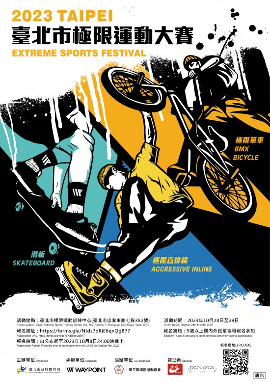 五、檢附 2023 年臺北市極限運動大賽簡章、海報 1 份。