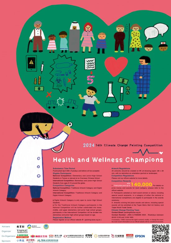 二、 第 14 屆為呼應聯合國永續發展目標(SDGs)的第 3 項,「健康與福祉」,以「健康小大使」為主題,提升師生對傳染病的認知並共同探討如何預防傳染疾病;同時學習健康的生活方式、情緒管理等等,亦須充分了解各項子目標的內容,攜手邁向健康、平安生活。此繪畫比賽也呼應第 13 項,採取氣候行動並提升大眾相關意識。