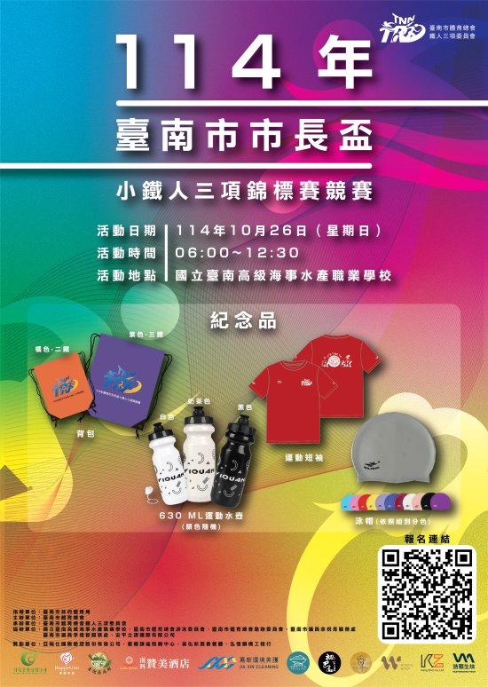 臺南市睽違 10 年辦理「市長盃小鐵人三項錦標賽」請家中有 1-9 年級的小朋友歡迎報名參加比賽培養運動興趣,全家總動員感受一下參賽的樂趣!