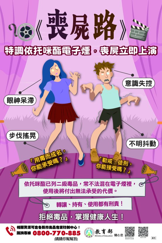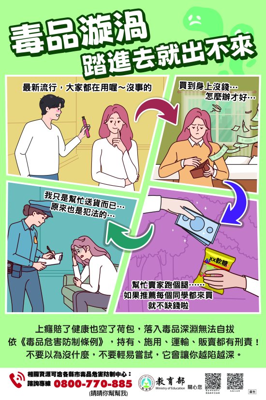 防制藥物濫用宣導:轉教育部製作 114 年防制學生藥物濫用電子文宣-海報 8 張