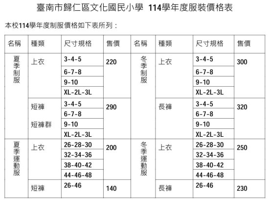 因應天氣漸涼有購買冬季制服需求,服裝廠商 11/2(日)8 : 30~11 : 30 於校史室進行服務,歡迎有需要的家長到場選購。
