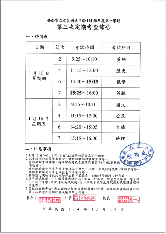 重要 教學組長 - 訊息公告 | 2025-12-29 | 點閱數: 107