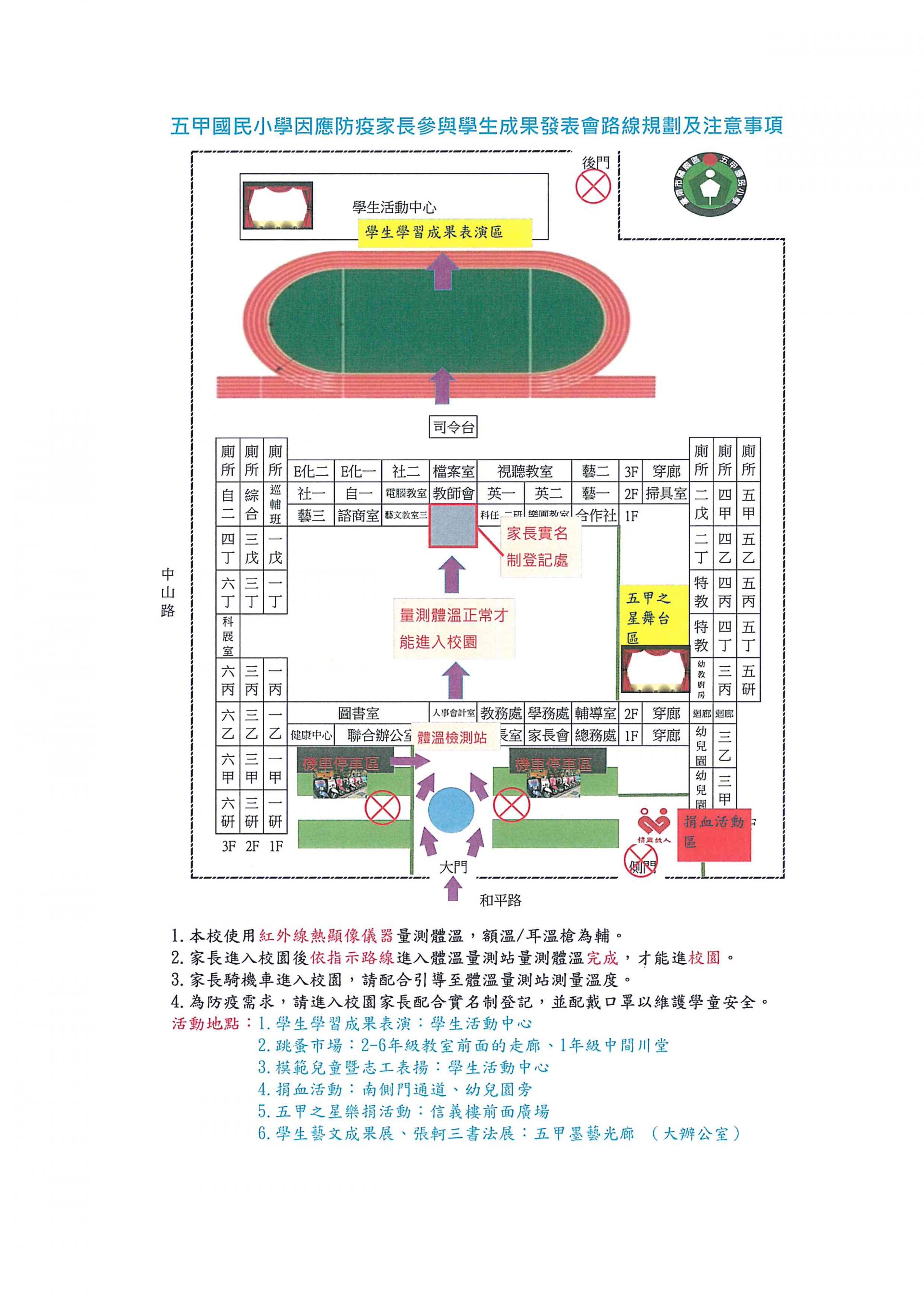 2.家長進入校園後依指示路線進入體溫量測站量測體溫完成,才能進校園。