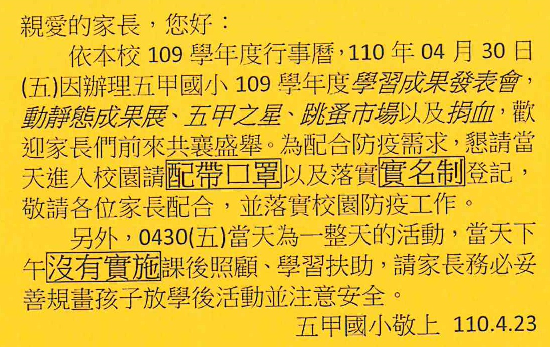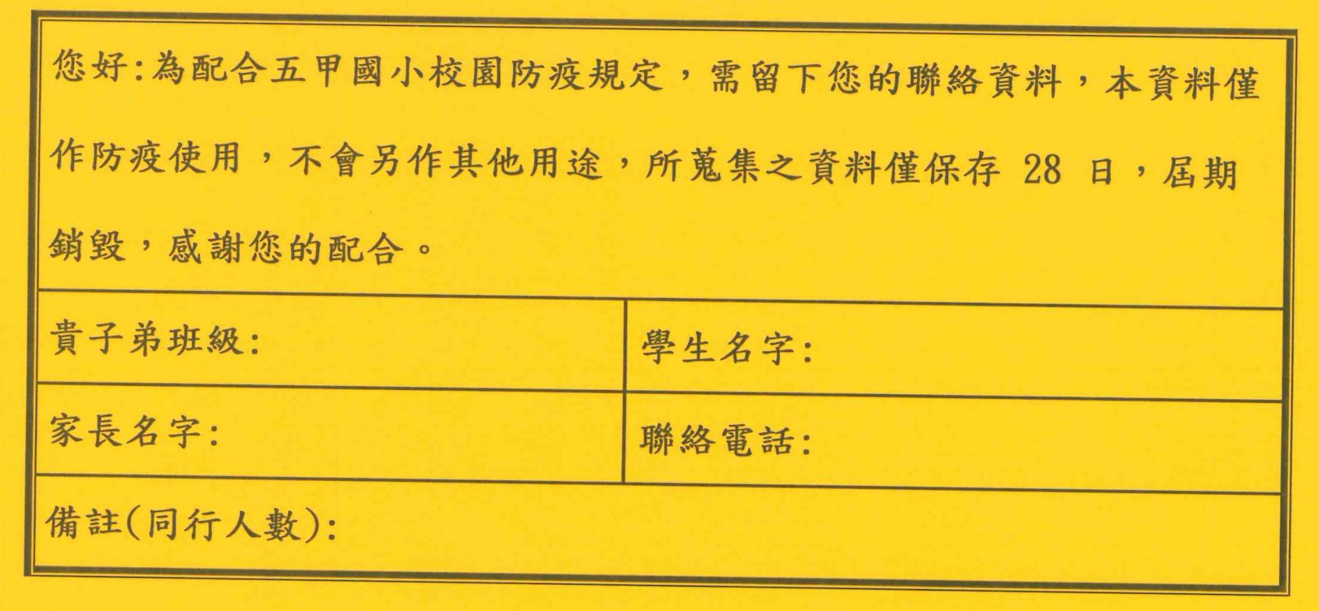 4.為防疫需求,請進入校園家長配合實名制登記,並配戴口罩以維護學童安全。