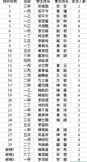 12/7(六)走讀七甲花卉園區活動中籤者學生名單,如附件。