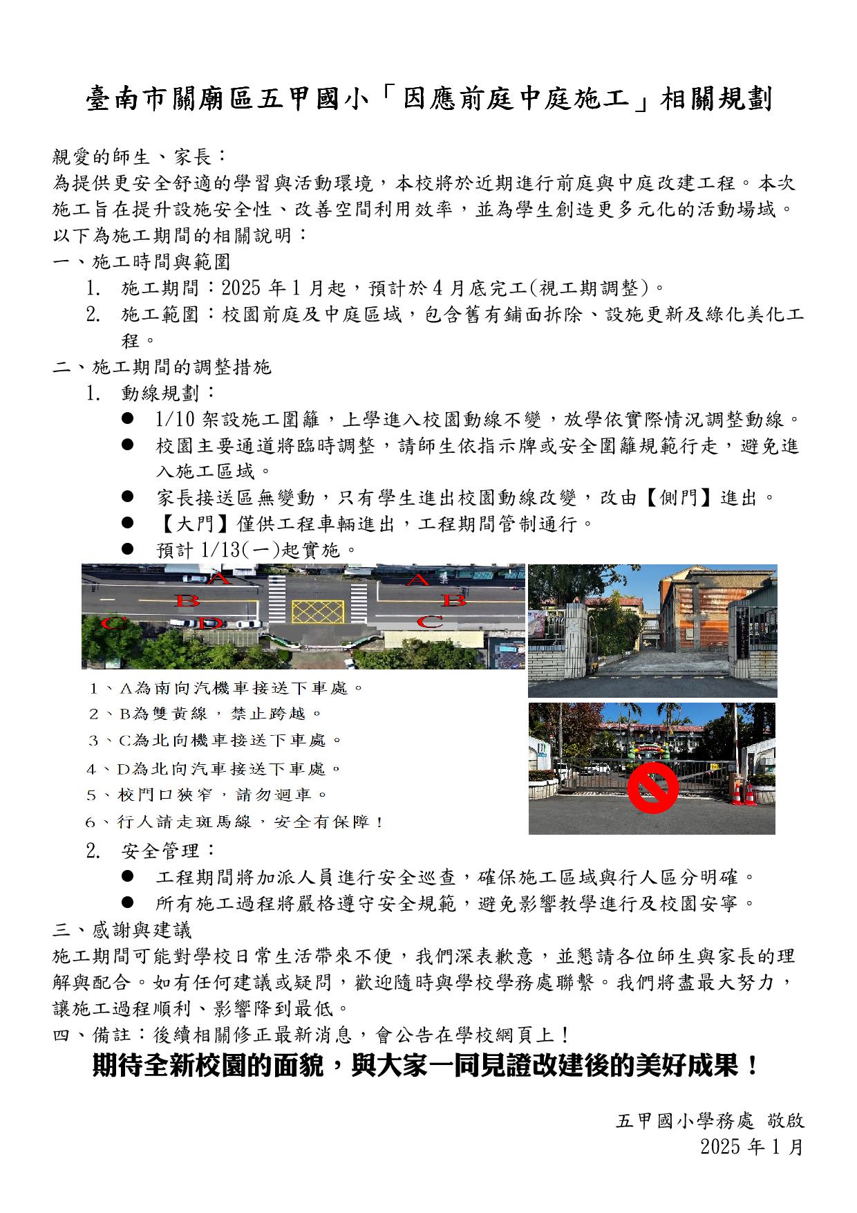 五甲國小學務處 敬啟 2025 年 1 月